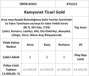 Bu ürün, ticari tüzel kişilik ve şirketlere veya kurumlara ait kamyonetler içindir.